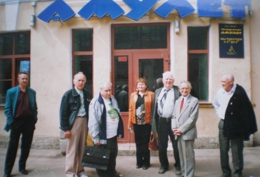 Перед входом в кафе на праздничный товарищеский ужин в честь Дня Радио